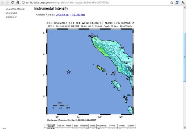 Bei FOCUS lesen wir (aufgerufen am 11.4.12), daß das Erdbeben vor Sumatra „eines der heftigsten, das weltweit je gemessen wurde“ ist. Sie finden bei FOCUS eine Auflistung der schwersten Beben seit 1900