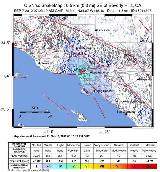 Wenige Tage vorher, nämlich am 3. September 2012, hatte sich bereits ein Erdbeben (Stärke 3,3) in Los Angeles ereignet.